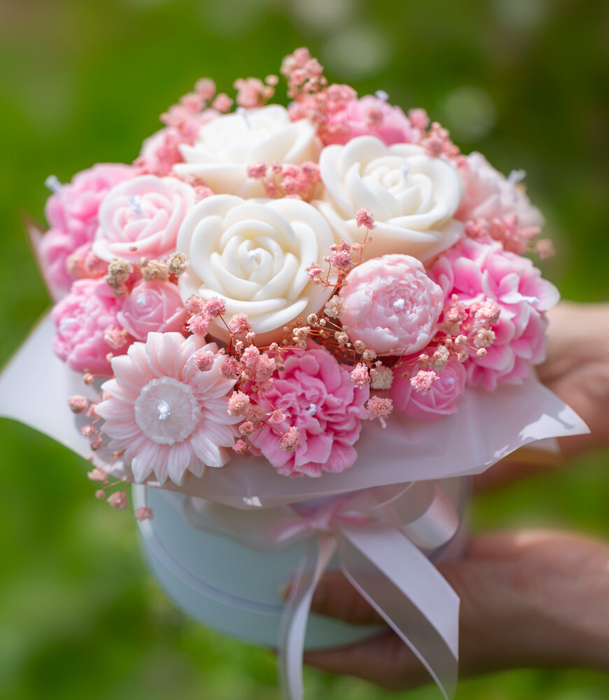 Découvrez notre bouquet éclatant de fleurs bleu et blanc, fabriqué en cire naturelle et infusé de doux parfums. Parfait pour une touche élégante et raffinée dans votre intérieur.