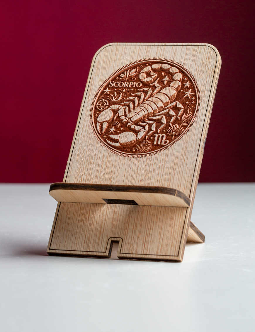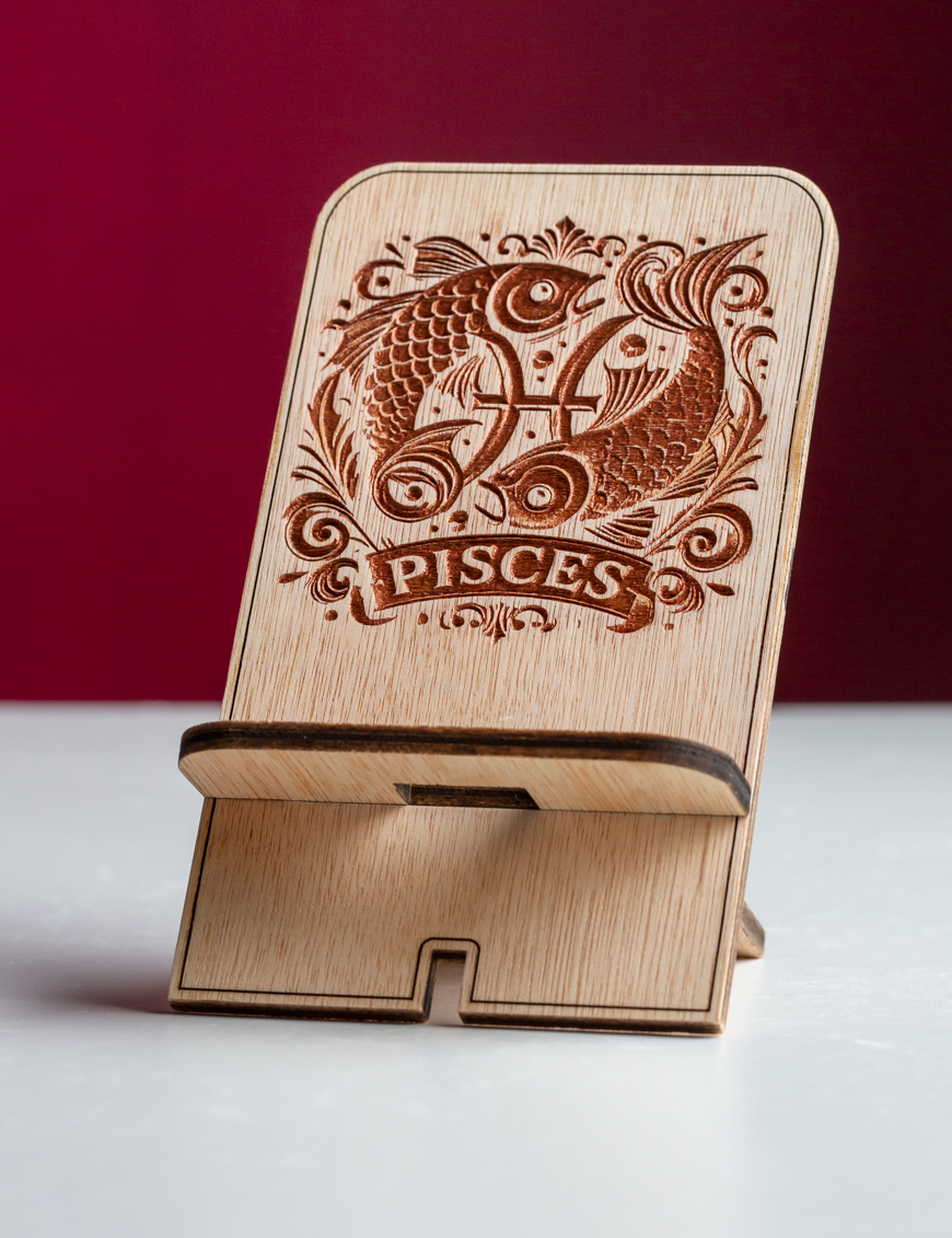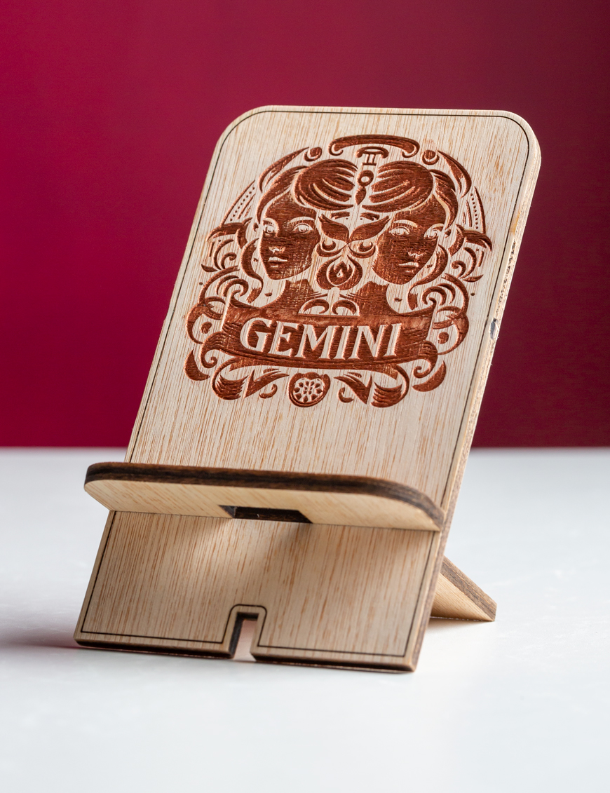 Adoptez l’élégance avec notre support de téléphone en bois gravé. Chaque modèle, finement décoré selon votre signe astrologique, allie style et utilité. Que vous soyez Lion, Gémeaux ou autre, exprimez votre personnalité avec ce support unique. Une idée cadeau parfaite pour les amateurs d’astrologie !